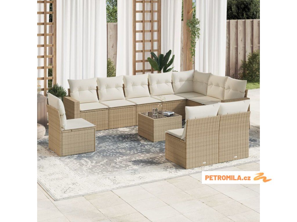 11dílný zahradní sedací souprava s poduškami béžový polyratan