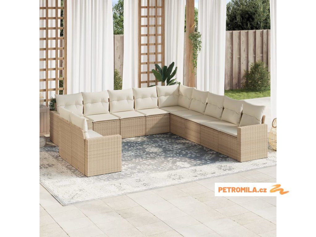 11dílný zahradní sedací souprava s poduškami béžový polyratan
