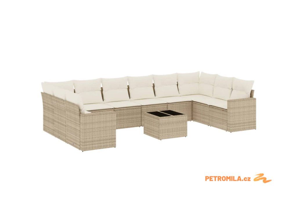 11dílný zahradní sedací souprava s poduškami béžový polyratan