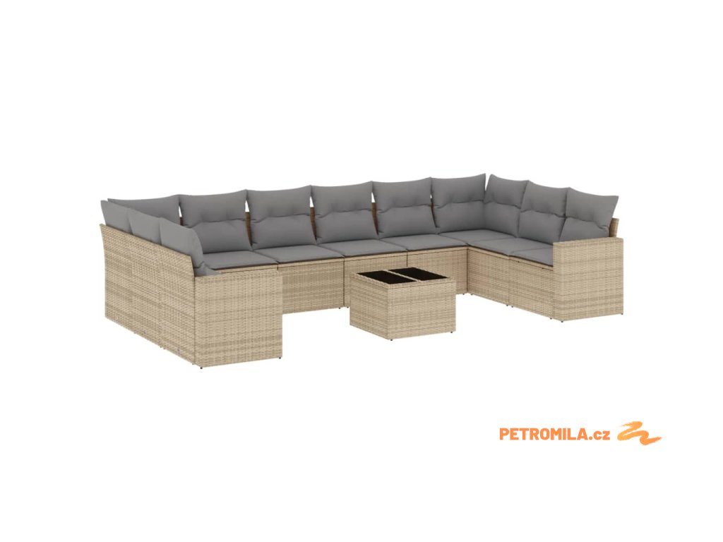 11dílný zahradní sedací souprava s poduškami béžový polyratan