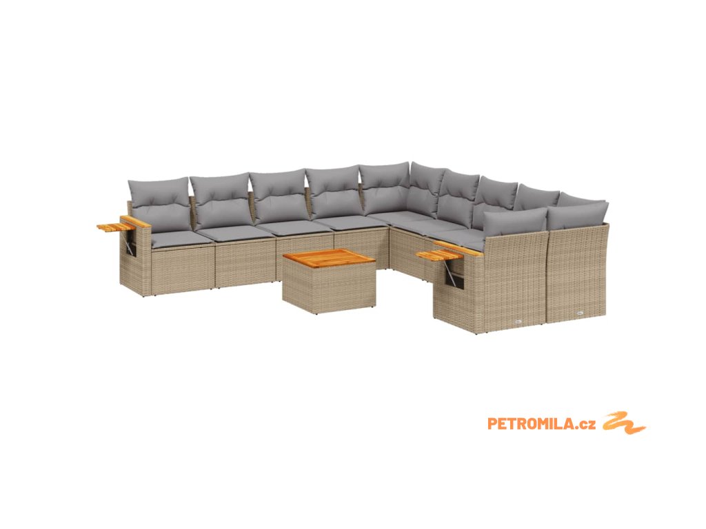 11dílný zahradní sedací souprava s poduškami béžový polyratan