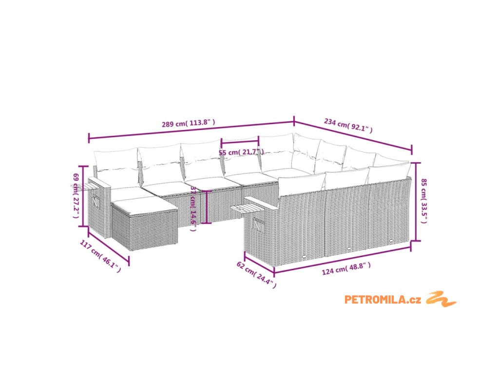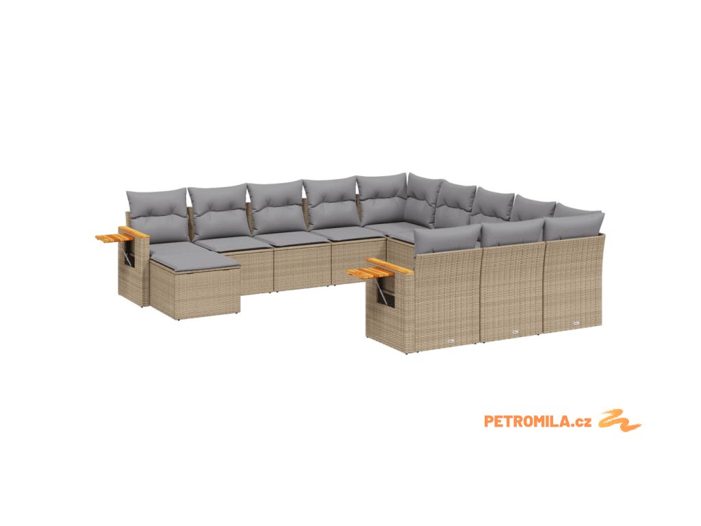 11dílný zahradní sedací souprava s poduškami béžový polyratan