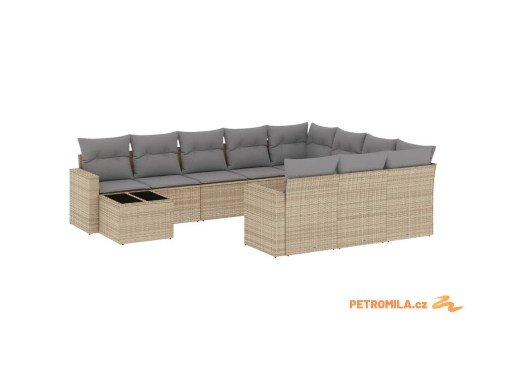 11dílný zahradní sedací souprava s poduškami béžový polyratan