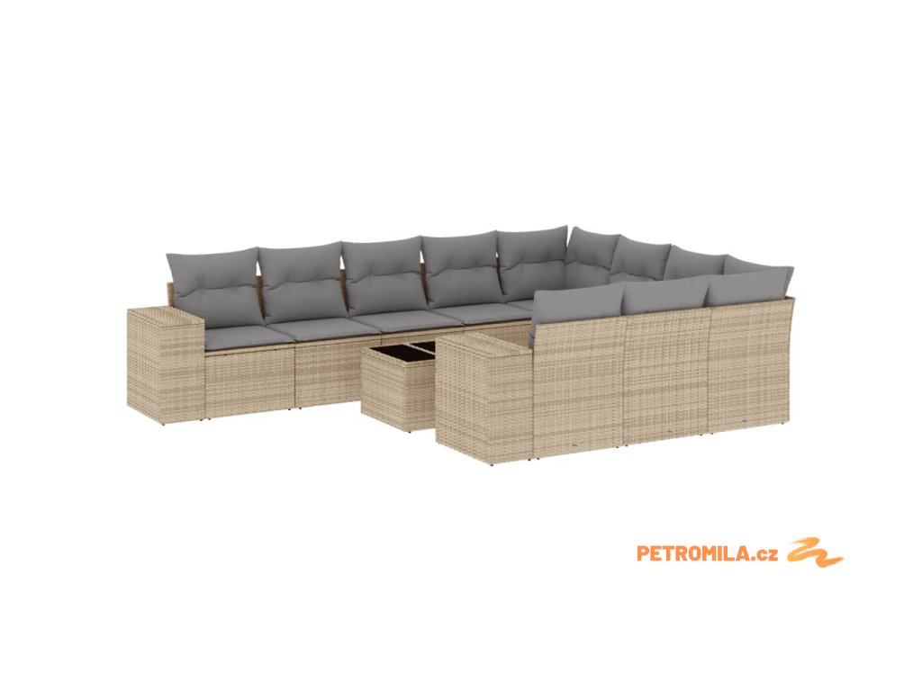 11dílný zahradní sedací souprava s poduškami béžový polyratan
