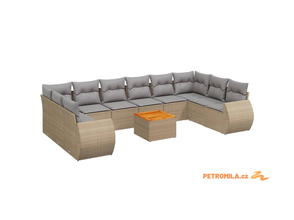 11dílný zahradní sedací souprava s poduškami béžový polyratan