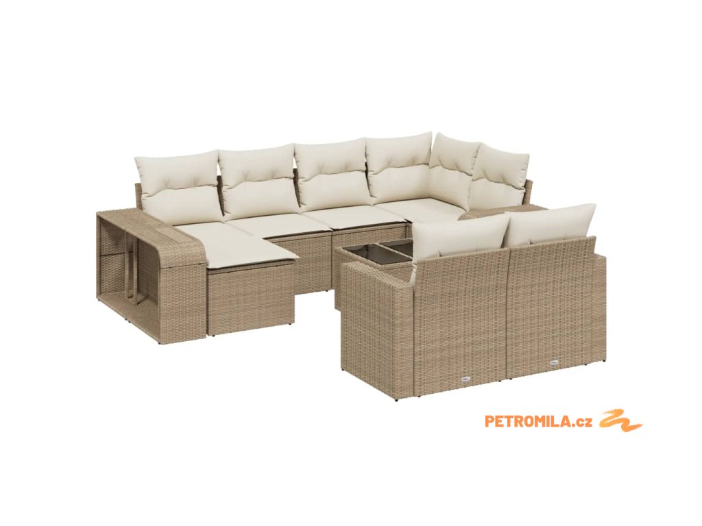 11dílný zahradní sedací souprava s poduškami béžový polyratan