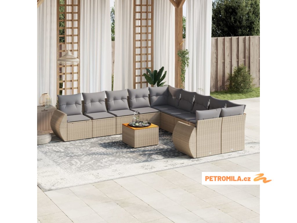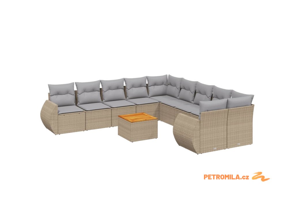 11dílný zahradní sedací souprava s poduškami béžový polyratan