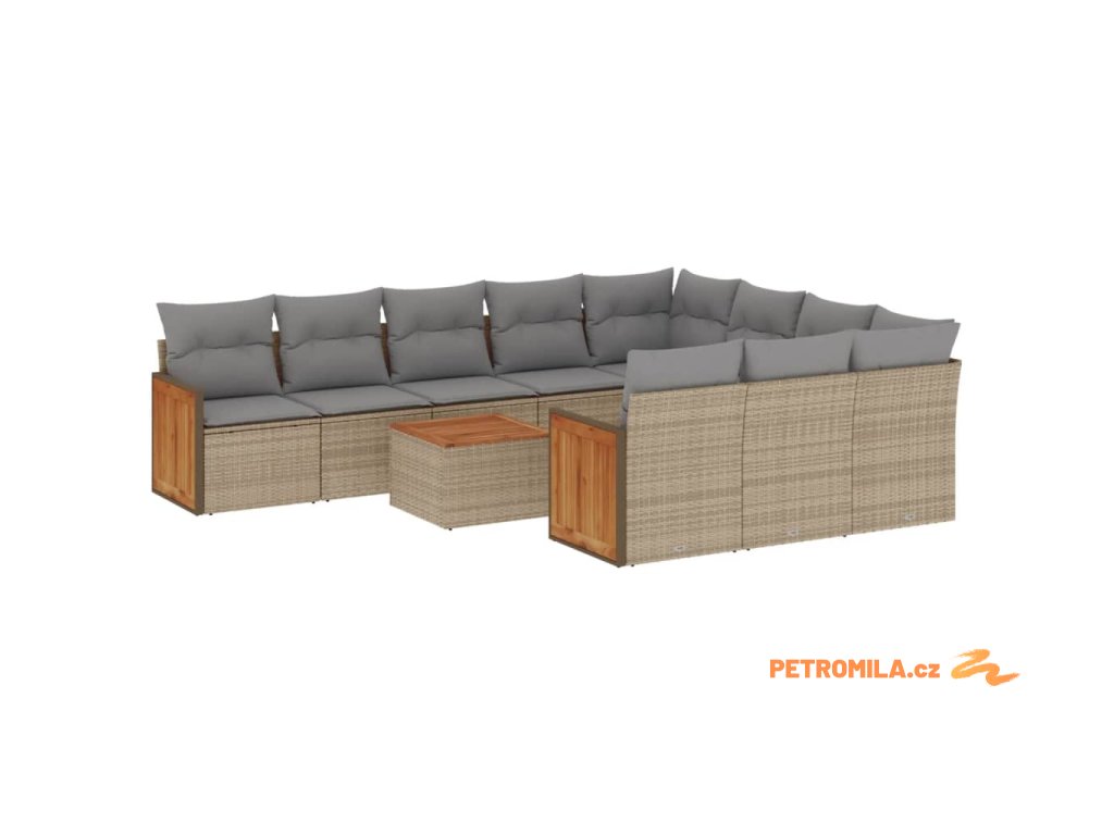 11dílný zahradní sedací souprava s poduškami béžový polyratan