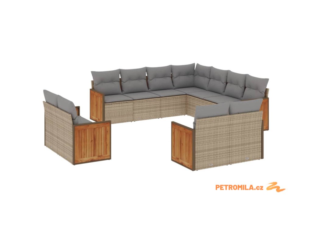 11dílný zahradní sedací souprava s poduškami béžový polyratan
