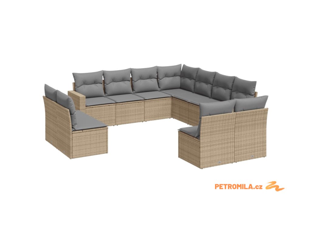 11dílný zahradní sedací souprava s poduškami béžový polyratan