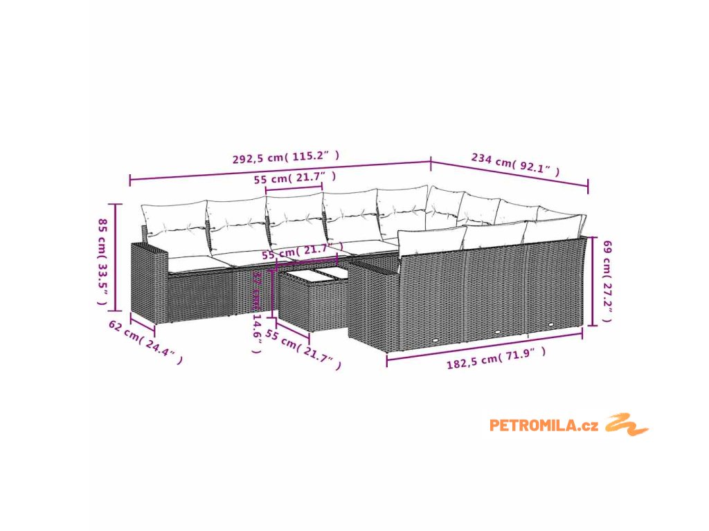 11dílný zahradní sedací souprava s poduškami hnědý polyratan