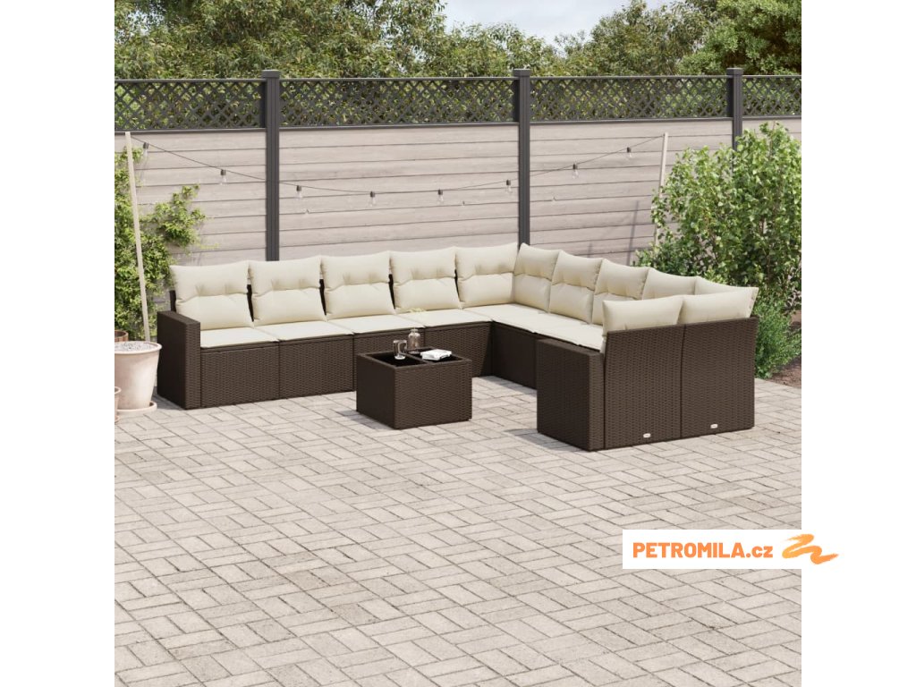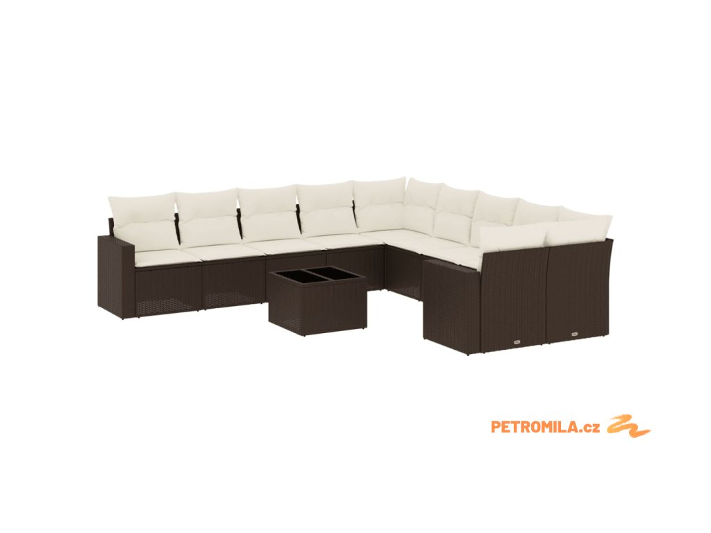 11dílný zahradní sedací souprava s poduškami hnědý polyratan