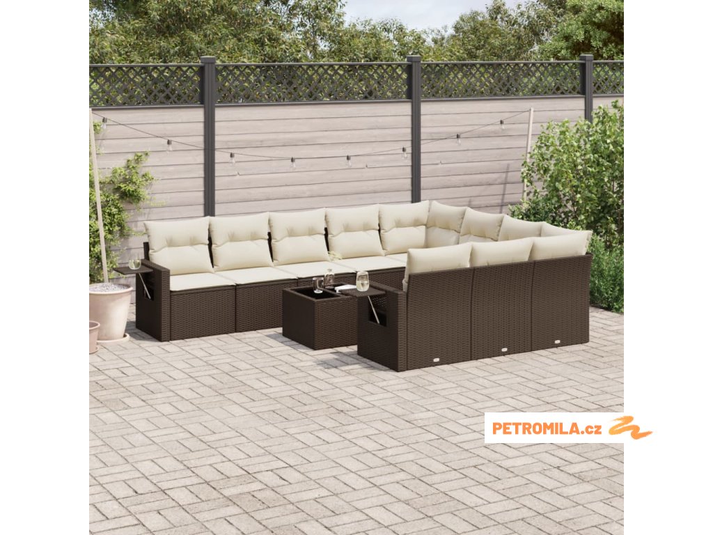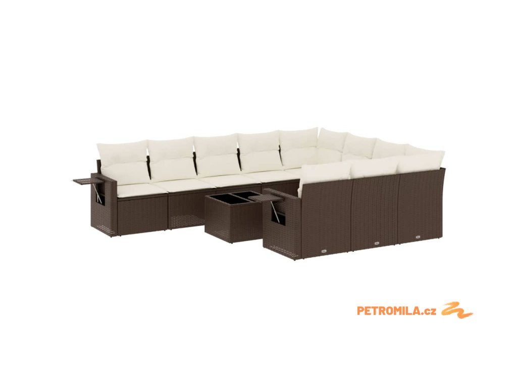 11dílný zahradní sedací souprava s poduškami hnědý polyratan