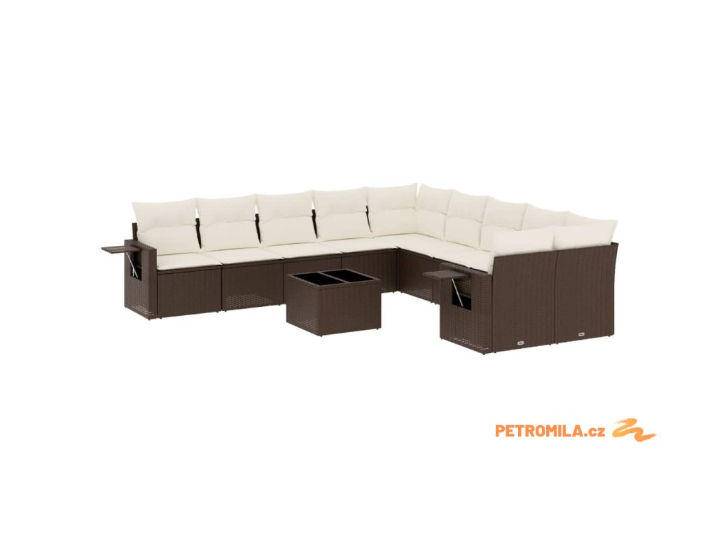 11dílný zahradní sedací souprava s poduškami hnědý polyratan