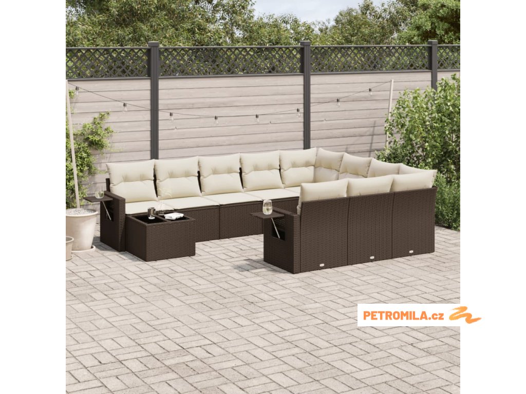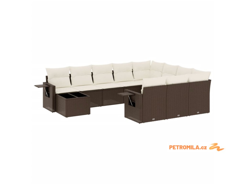 11dílný zahradní sedací souprava s poduškami hnědý polyratan