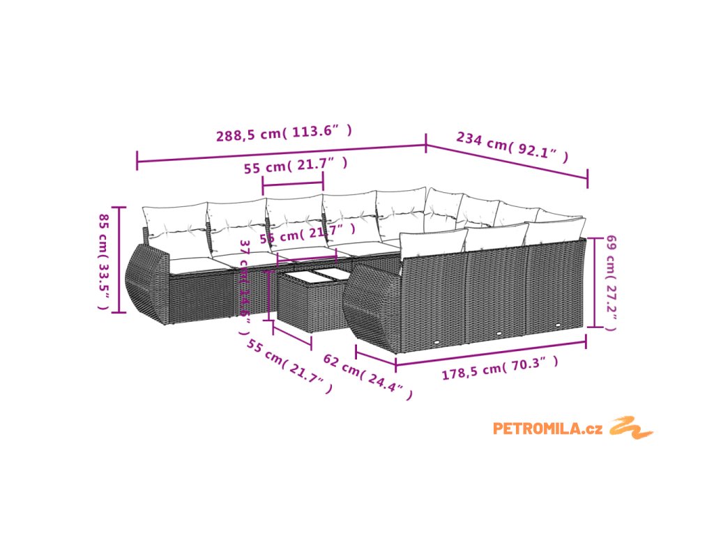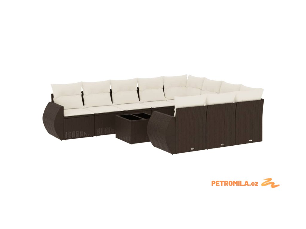 11dílný zahradní sedací souprava s poduškami hnědý polyratan