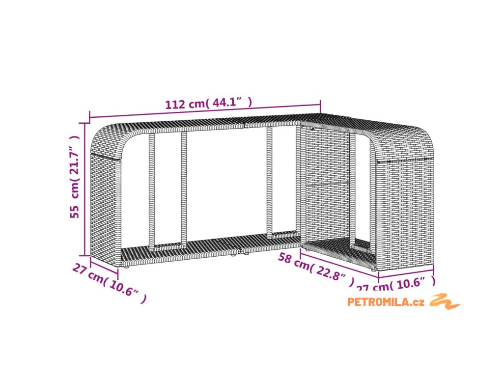 - Rozměry (L): 112 x 27 x 55 cm (D x Š x V)