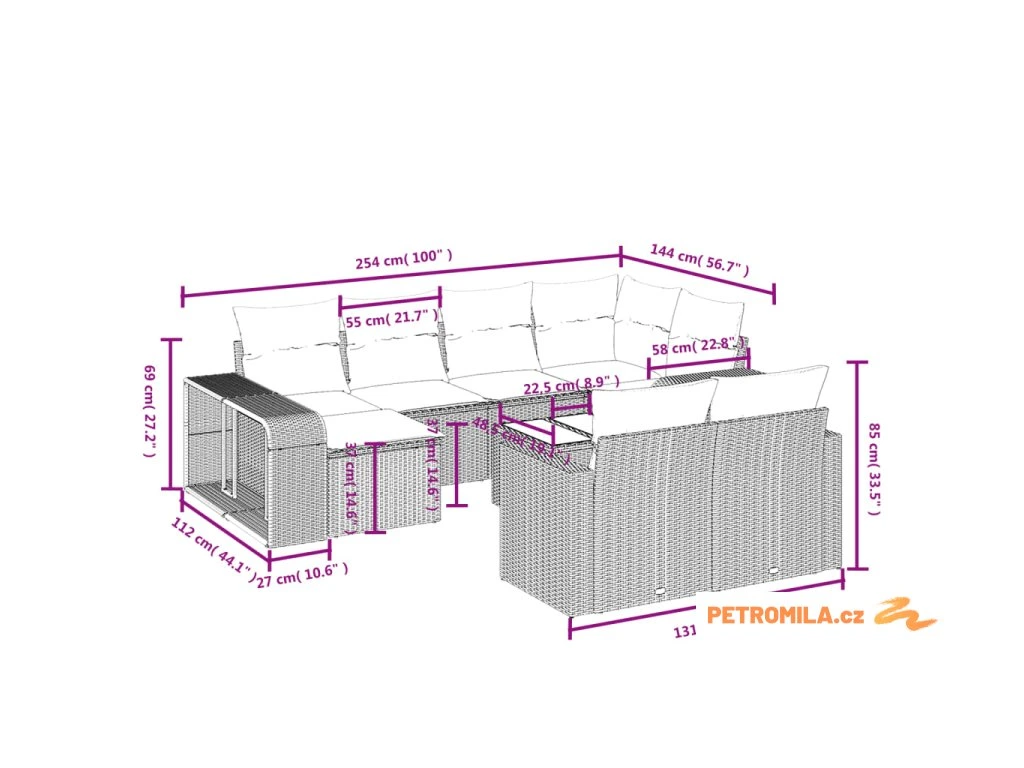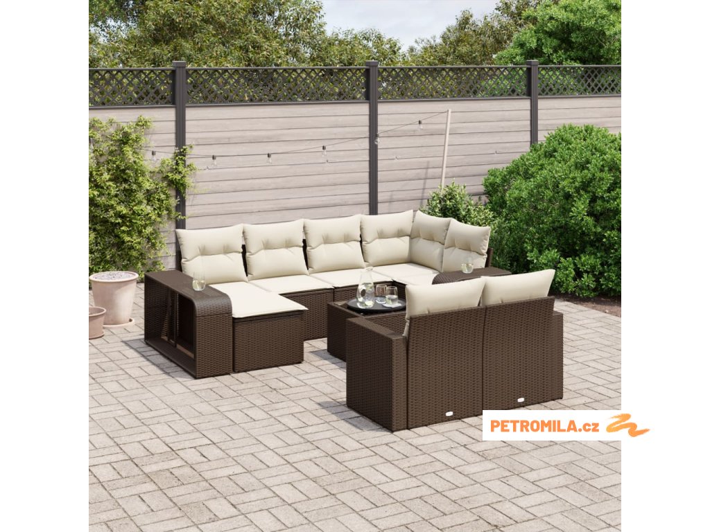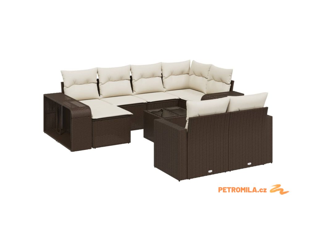 11dílný zahradní sedací souprava s poduškami hnědý polyratan