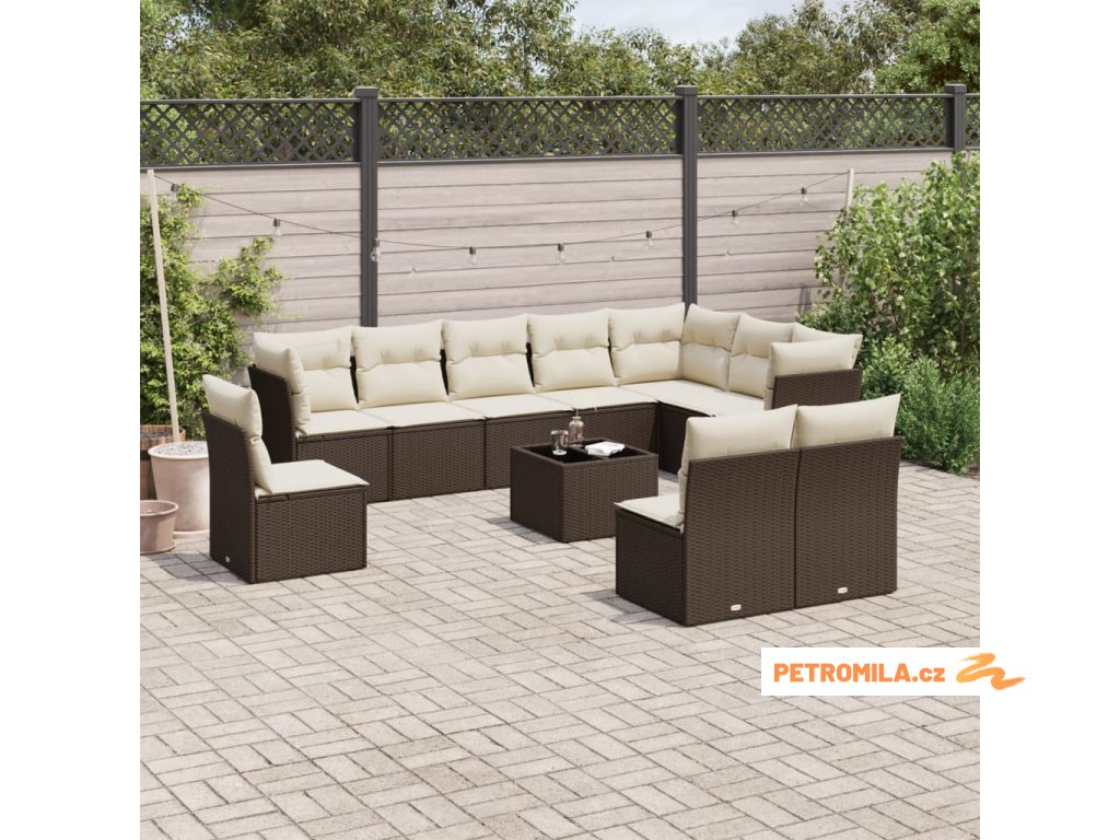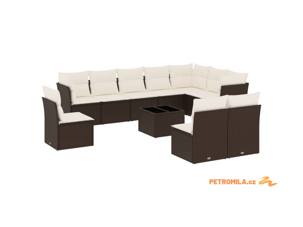 11dílný zahradní sedací souprava s poduškami hnědý polyratan