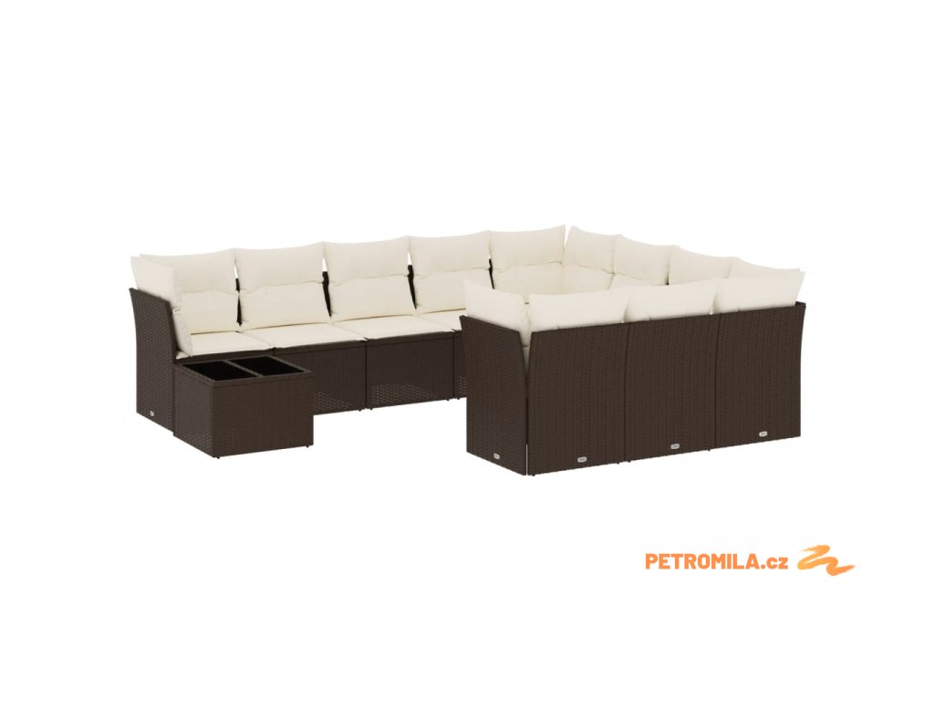 11dílný zahradní sedací souprava s poduškami hnědý polyratan