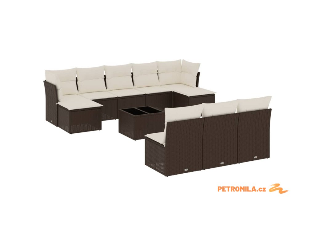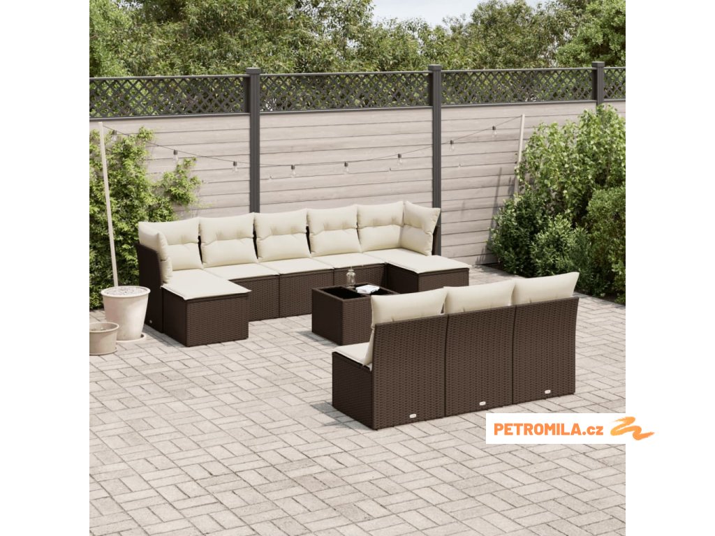 11dílný zahradní sedací souprava s poduškami hnědý polyratan