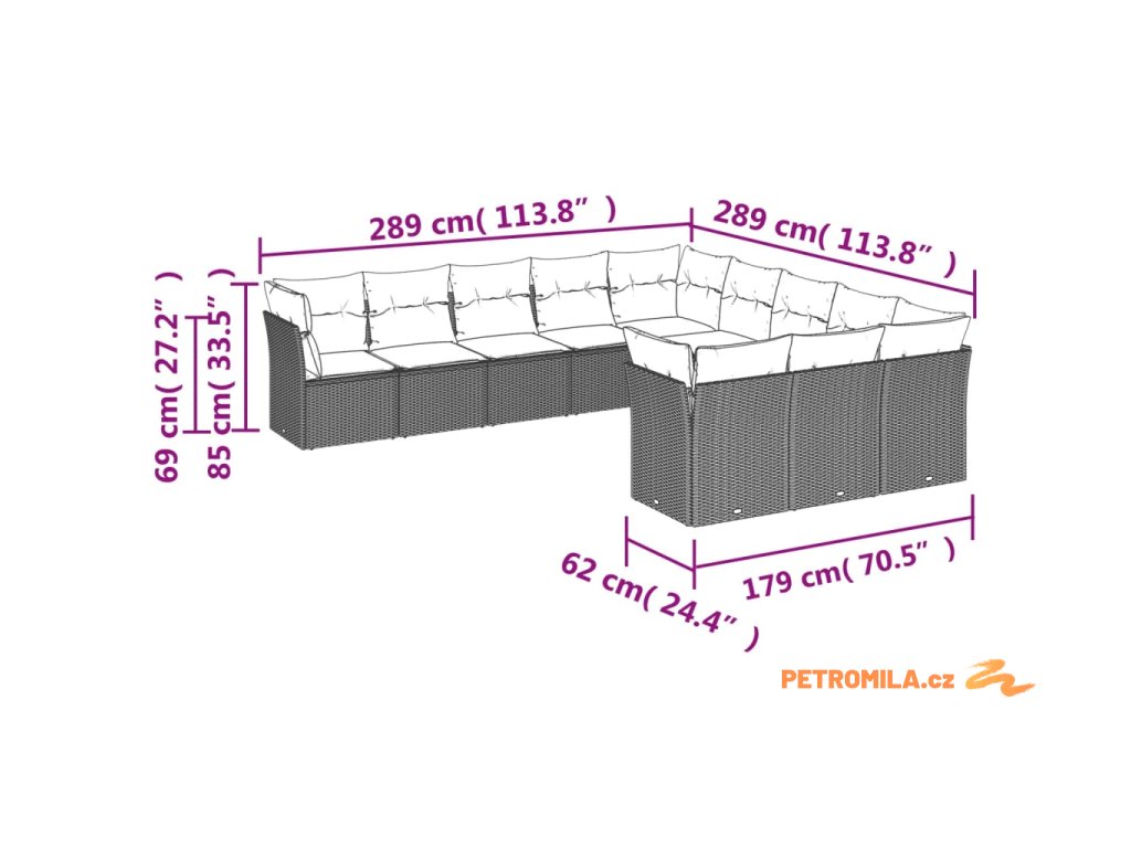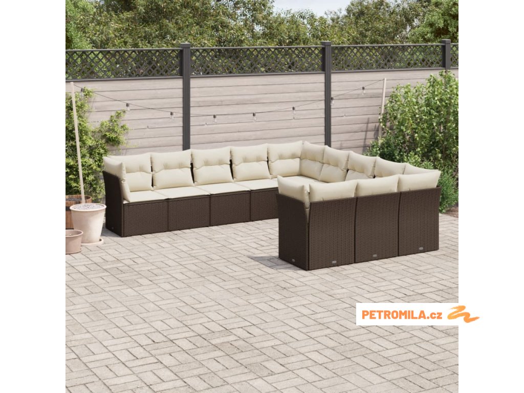 11dílný zahradní sedací souprava s poduškami hnědý polyratan