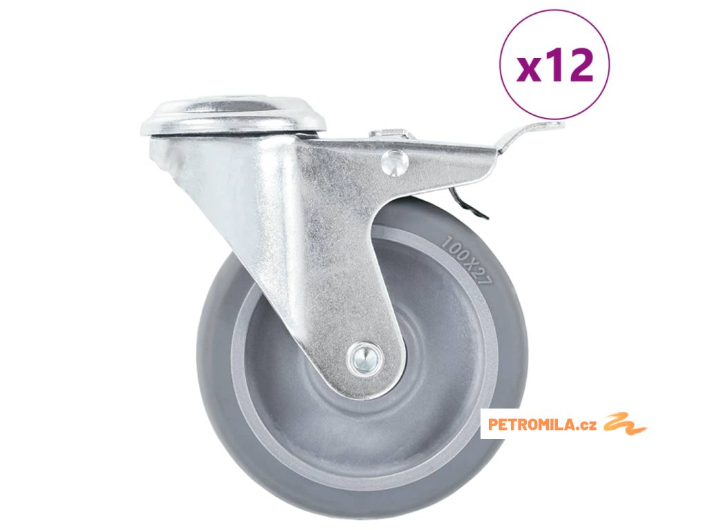 12 ks otočná kolečka s otvorem pro šroub 100 mm