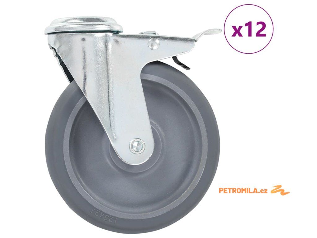 12 ks otočná kolečka s otvorem pro šroub 125 mm