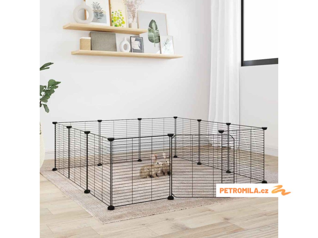 12dílná klec pro domácí mazlíčky s dvířky černá 35 x 35 cm ocelová