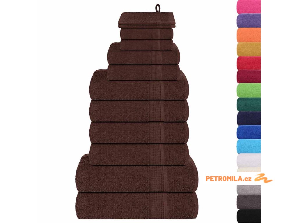 12dílná sada ručníků hnědá 360 g/m² 100% bavlna