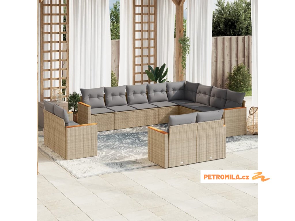 12dílná zahradní sedací souprava a podušky mix béžové polyratan