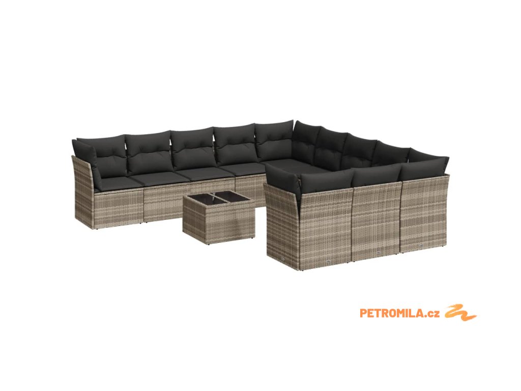 12dílná zahradní sedací souprava podušky světle šedá polyratan