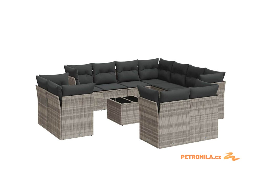 12dílná zahradní sedací souprava podušky světle šedá polyratan