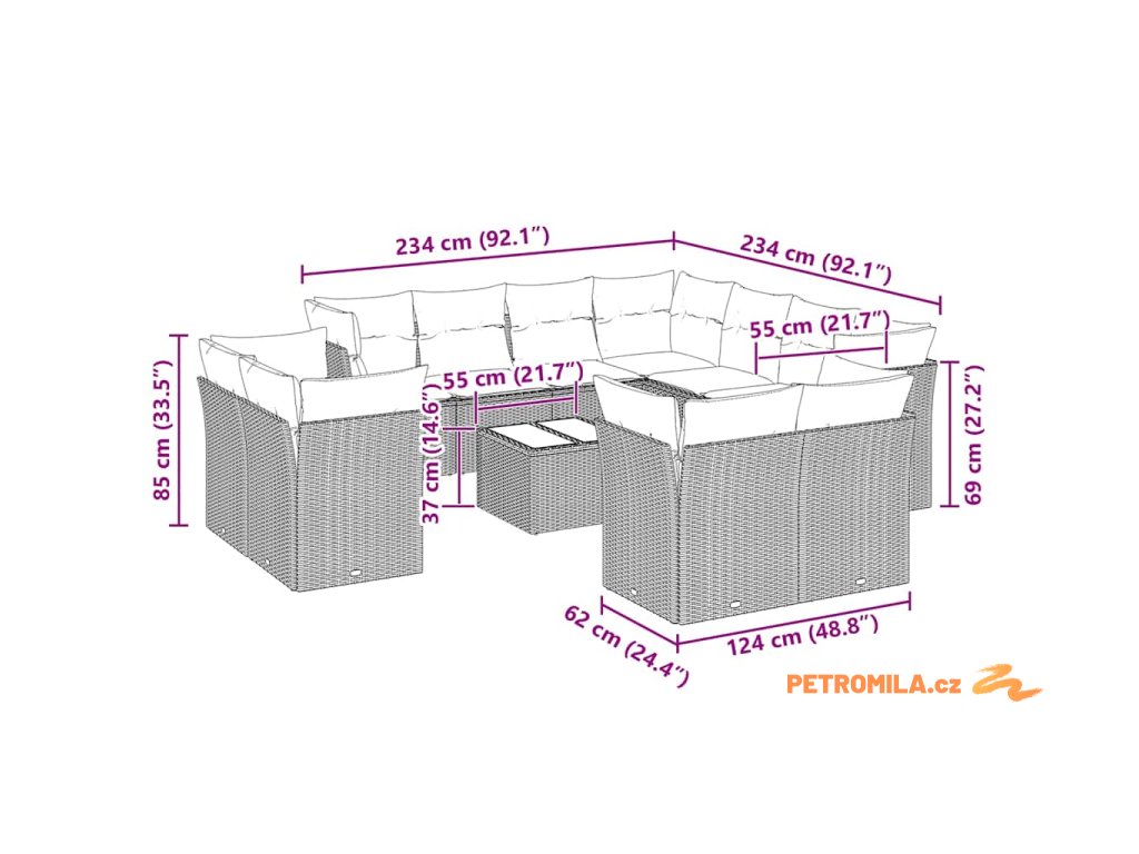 Tato zahradní sedací souprava je dokonalým doplňkem vaší zahrady, terasy nebo dvorku a poskytne vám pohodlné a příjemné místo, kde si můžete povídat s rodinou a přáteli nebo jen tak odpočívat a užívat si pobyt venku.