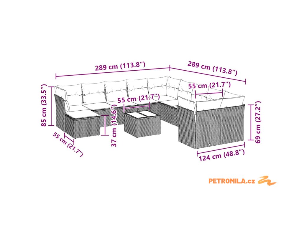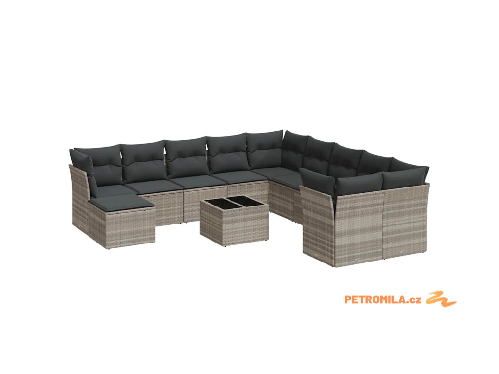 12dílná zahradní sedací souprava podušky světle šedá polyratan