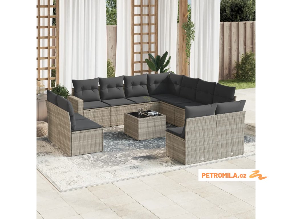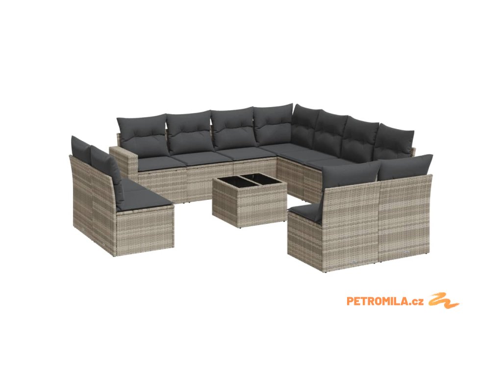 12dílná zahradní sedací souprava podušky světle šedá polyratan