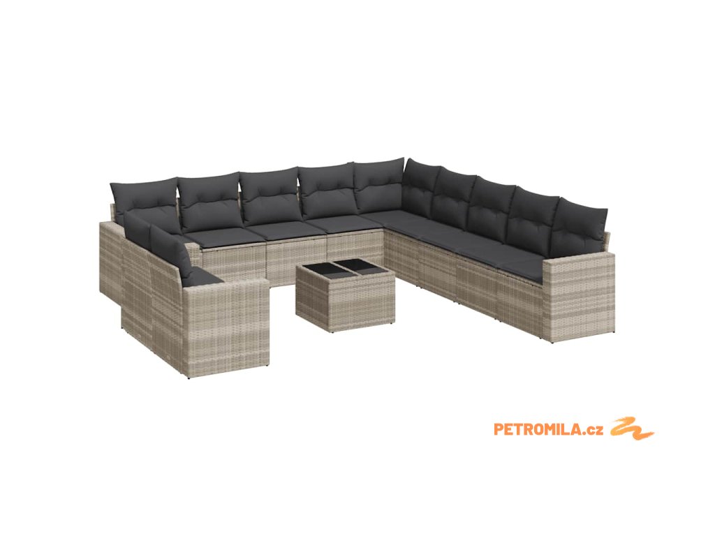 12dílná zahradní sedací souprava podušky světle šedá polyratan