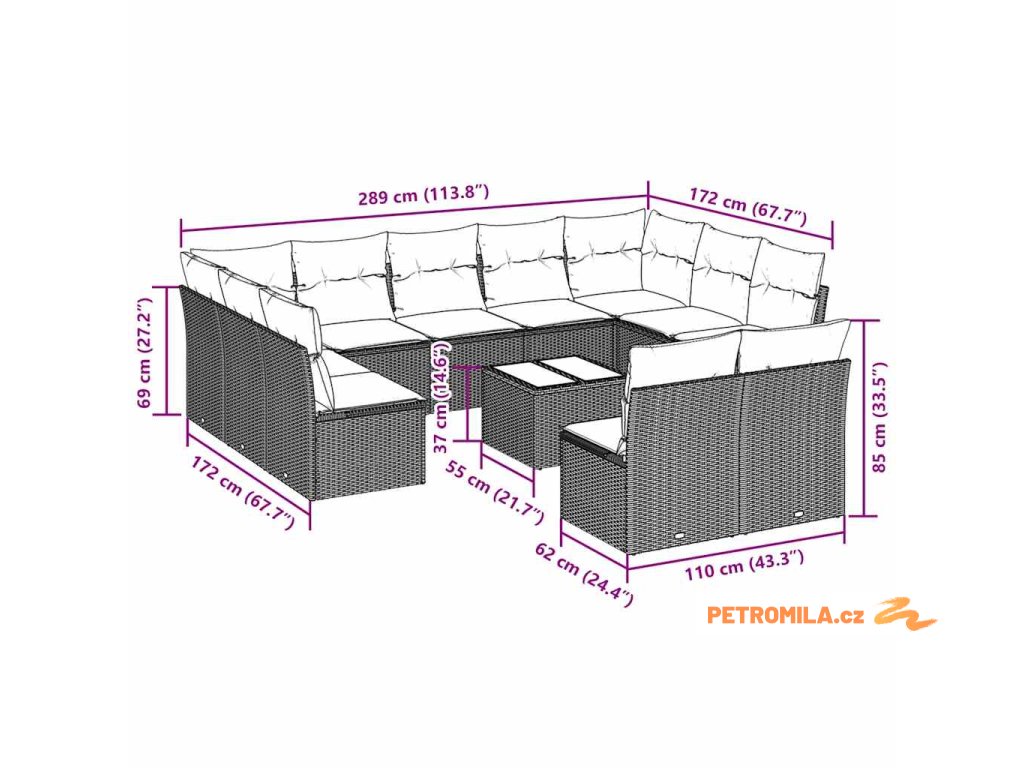 - 11 x poduška na sedák s odnímatelným a pratelným potahem