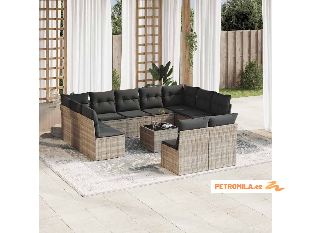 12dílná zahradní sedací souprava podušky světle šedá polyratan