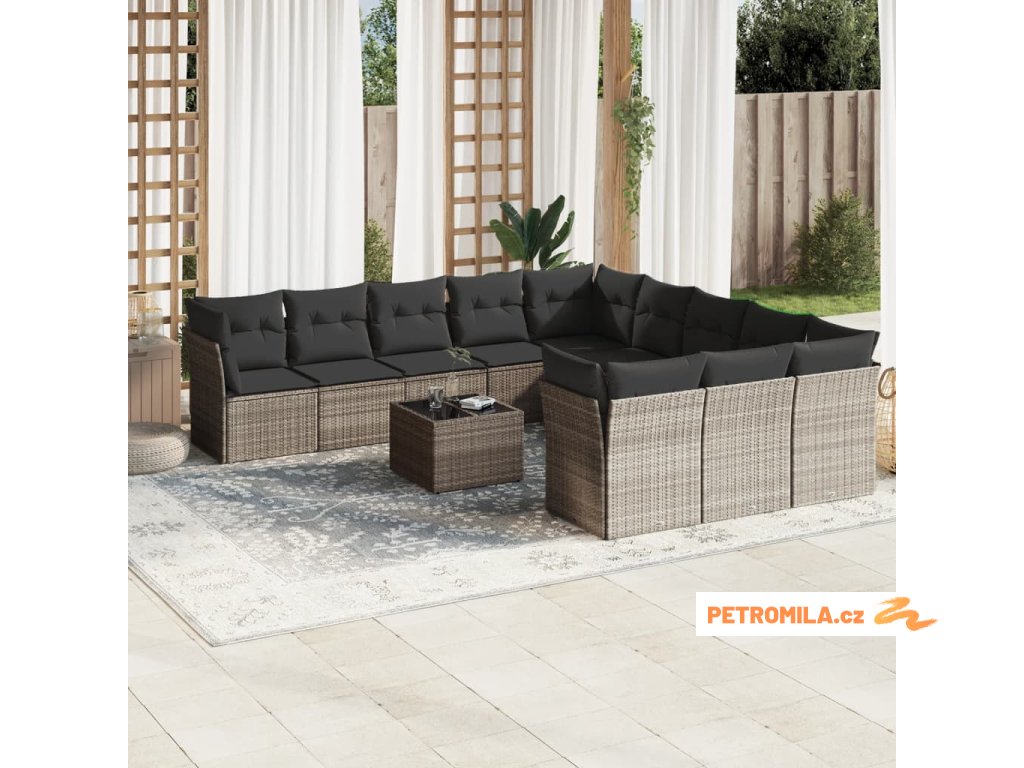 12dílná zahradní sedací souprava podušky světle šedá polyratan
