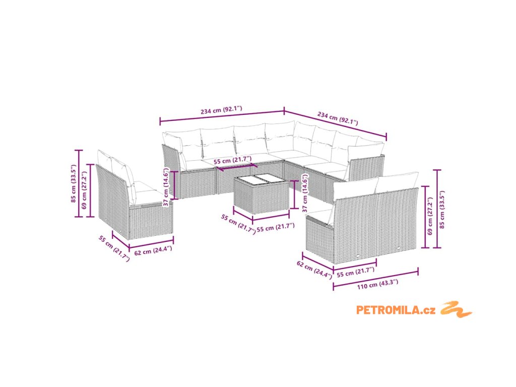 - 11 x poduška na sedák s odnímatelným a pratelným potahem