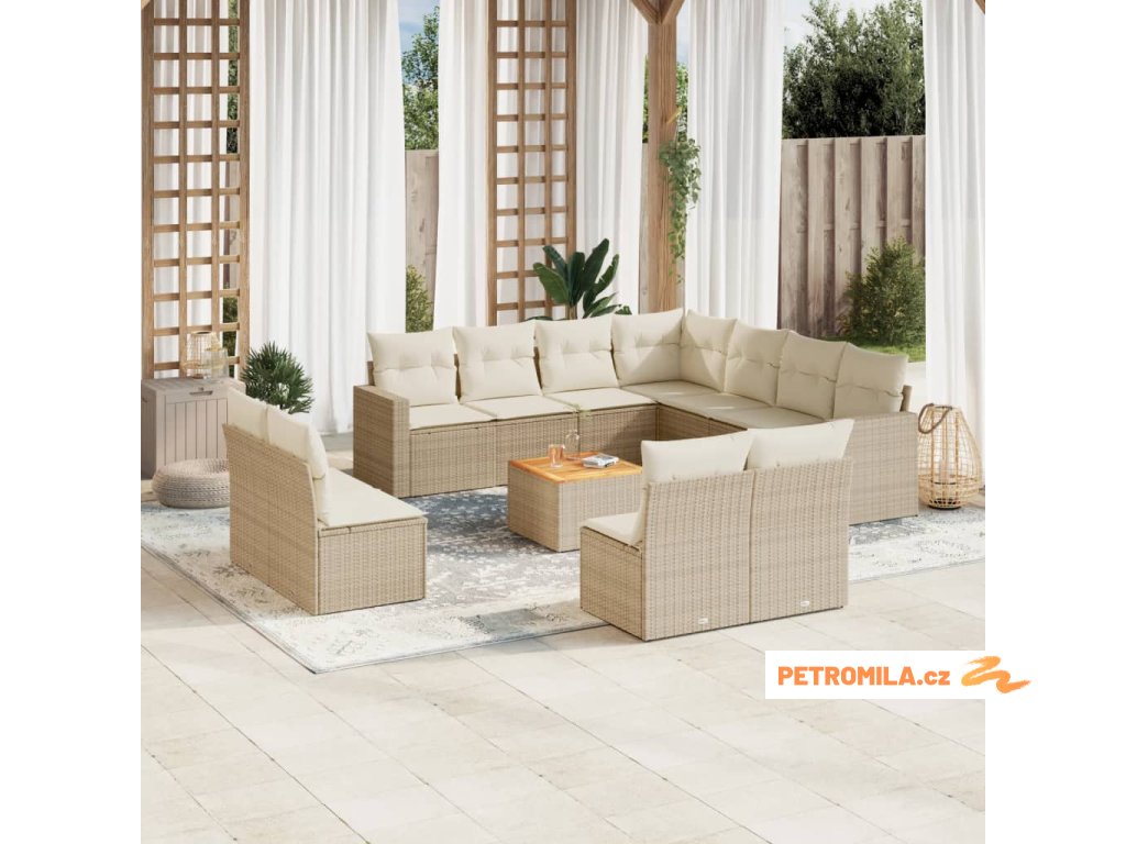 12dílná zahradní sedací souprava s poduškami béžová polyratan