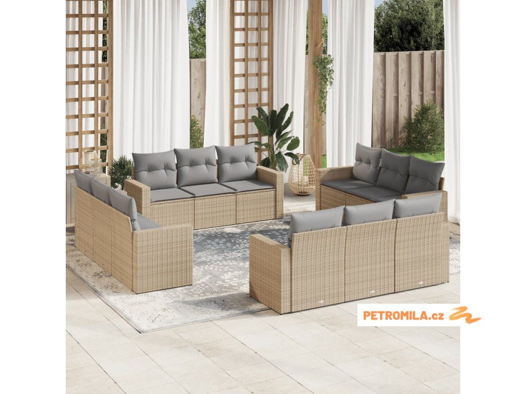 12dílná zahradní sedací souprava s poduškami béžová polyratan