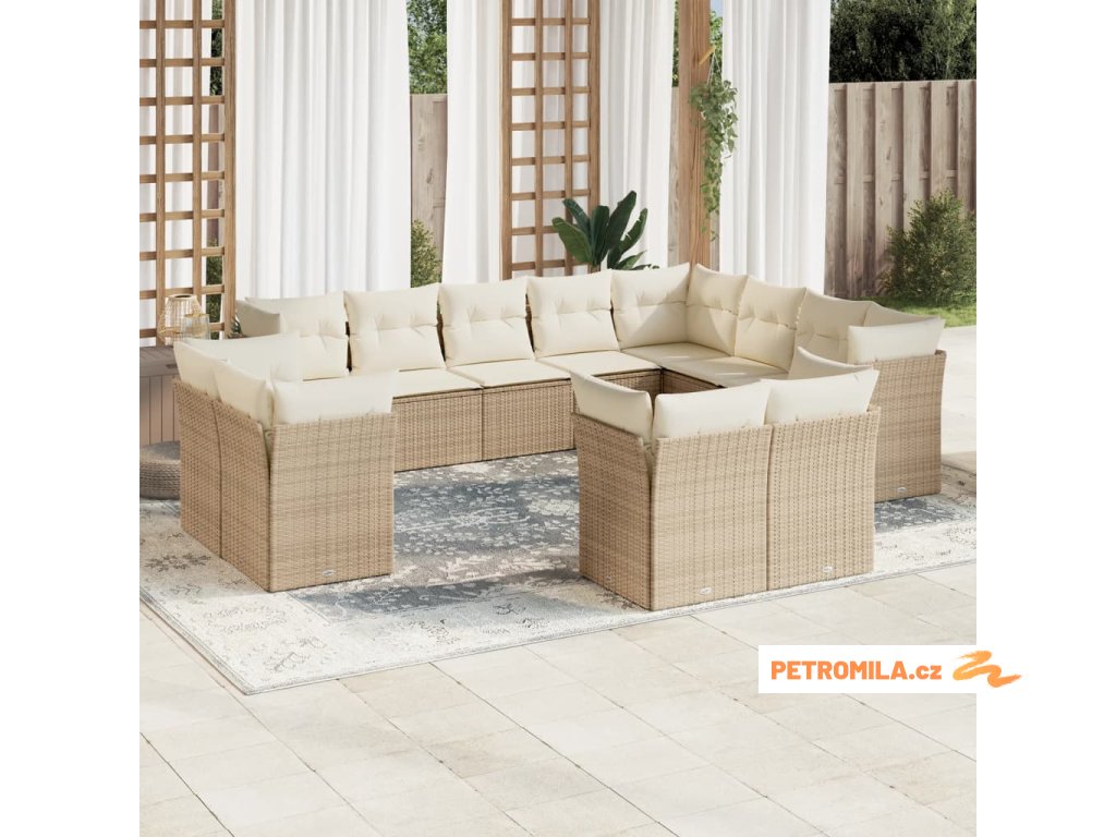 12dílná zahradní sedací souprava s poduškami béžová polyratan