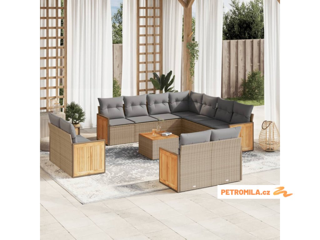 12dílná zahradní sedací souprava s poduškami béžová polyratan