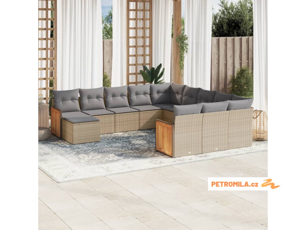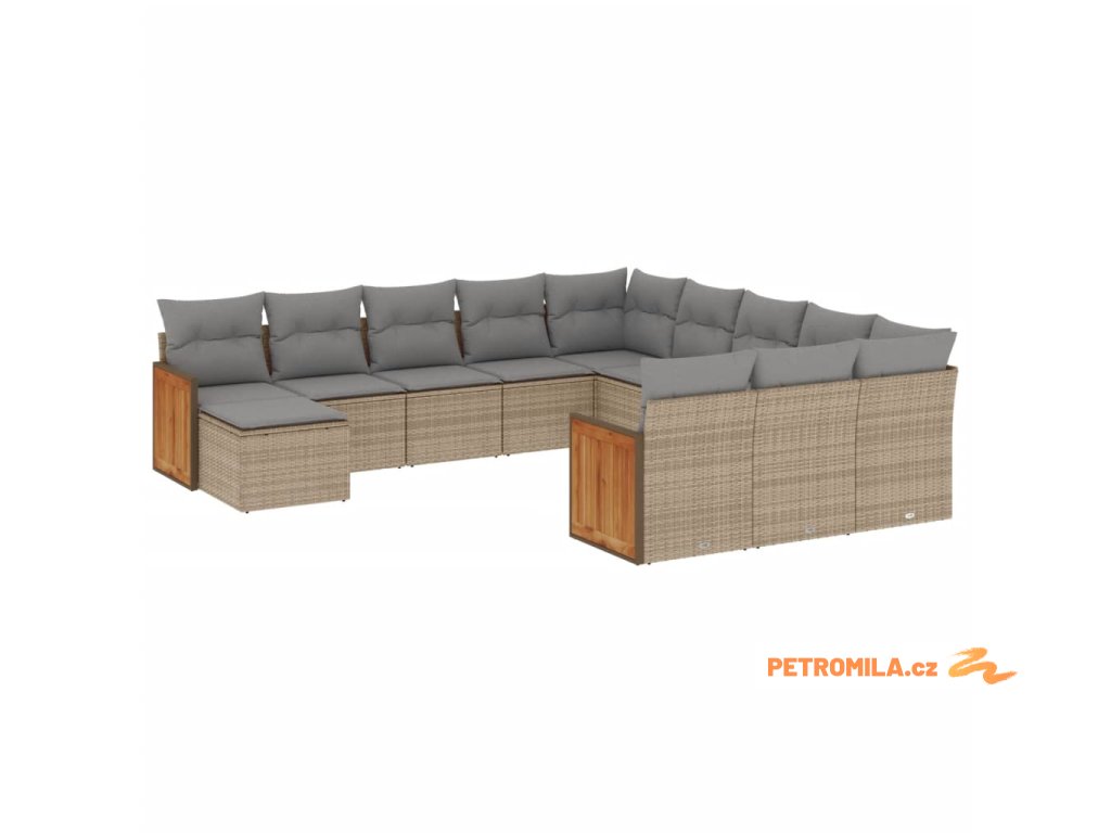 12dílná zahradní sedací souprava s poduškami béžová polyratan