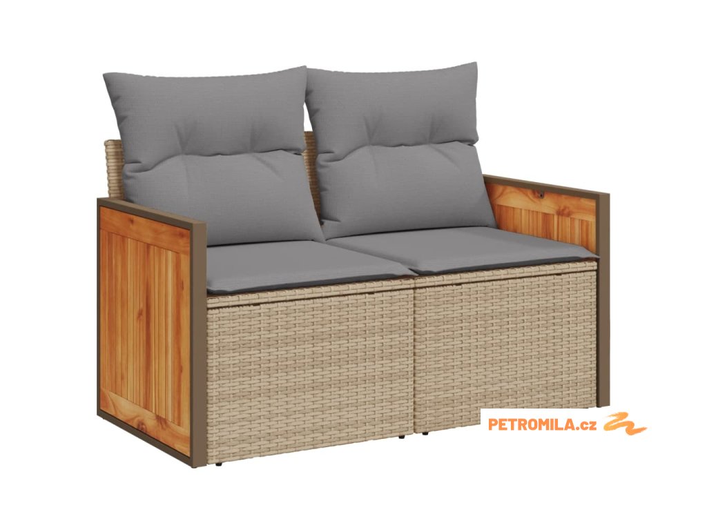 - Materiál: PE ratan, práškově lakovaná ocel, masivní akáciové dřevo s olejovou povrchovou úpravou