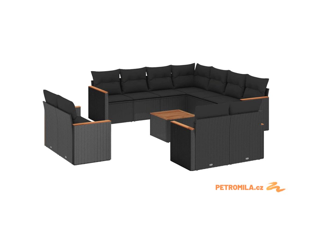 12dílná zahradní sedací souprava s poduškami černá polyratan