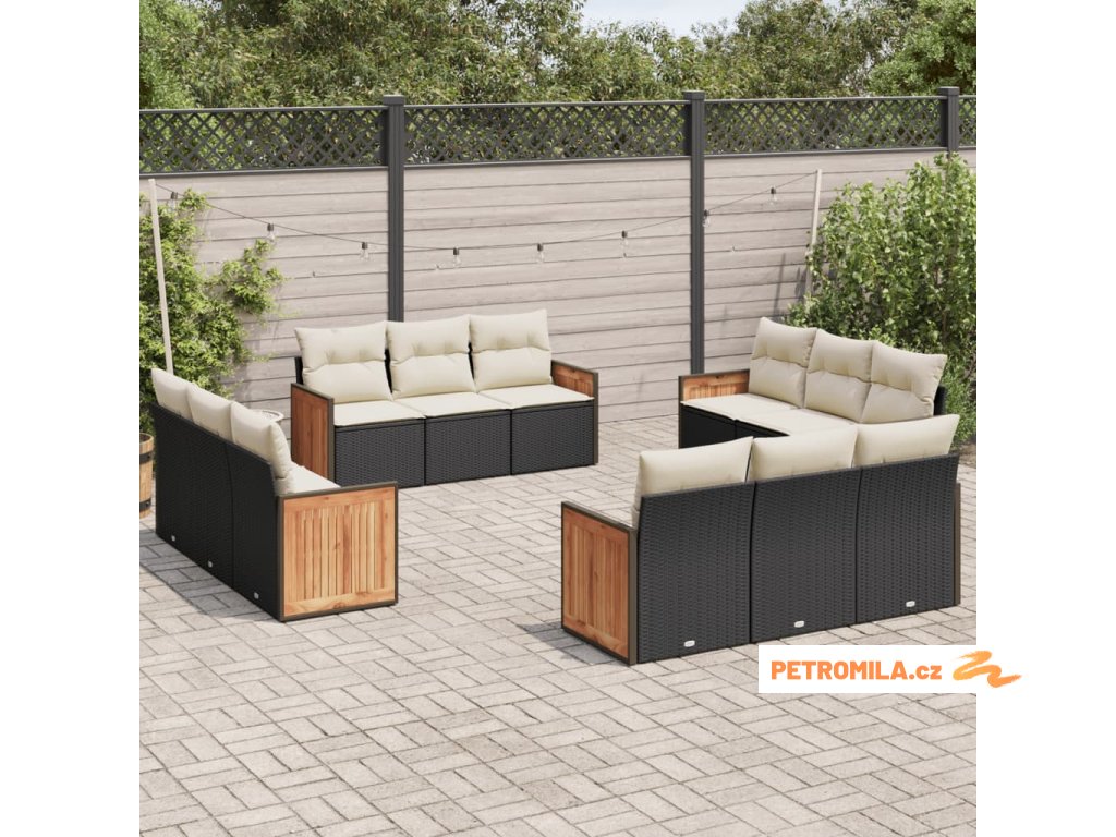 12dílná zahradní sedací souprava s poduškami černá polyratan