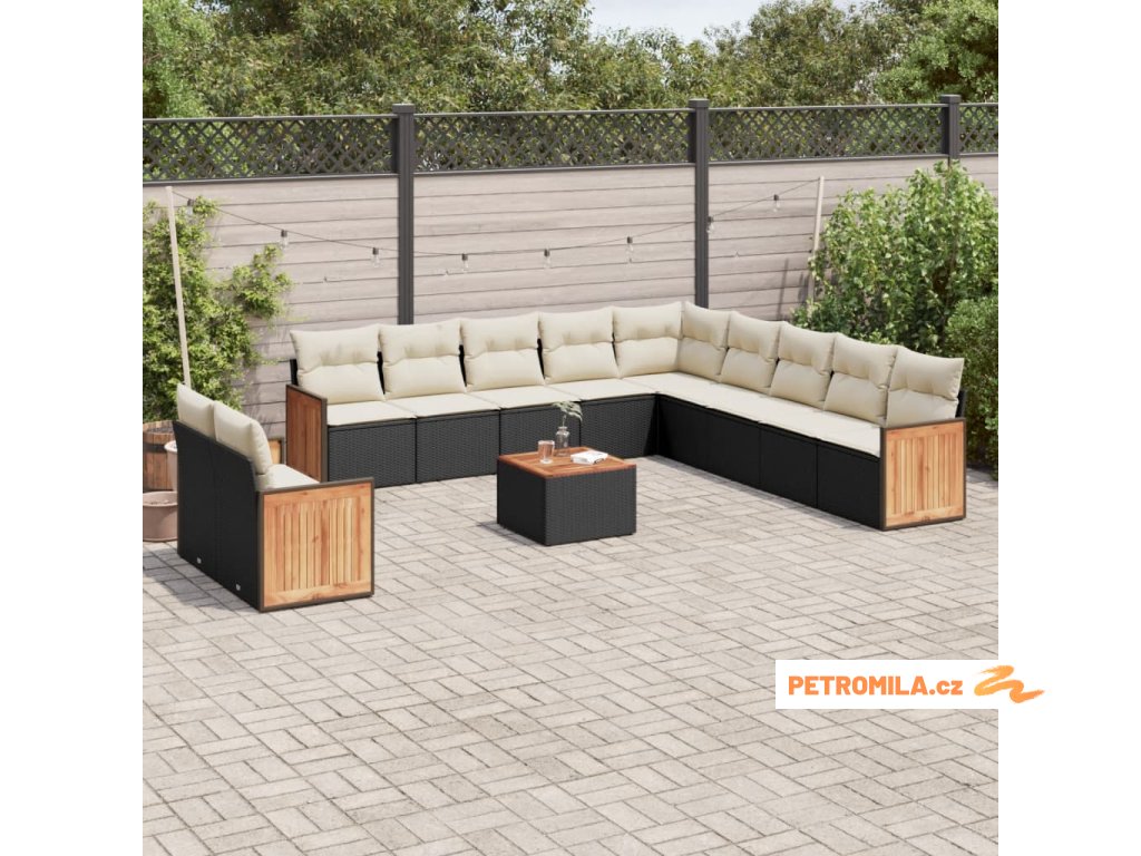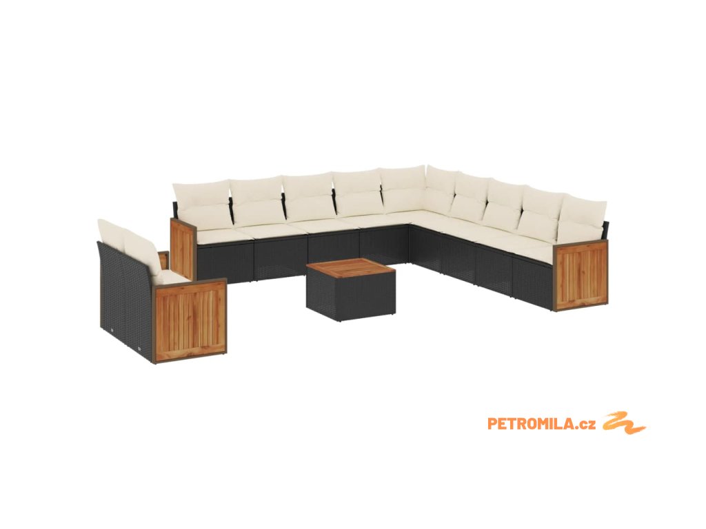 12dílná zahradní sedací souprava s poduškami černá polyratan